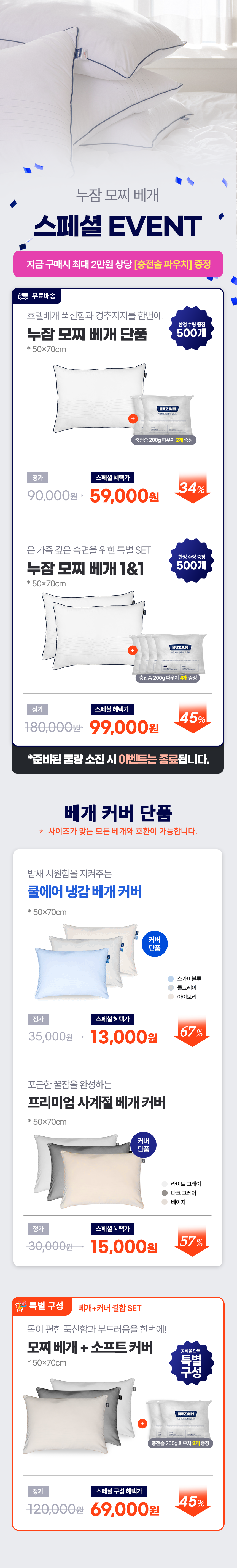 [NEW] 누잠 모찌 베개 | 알러지-프리 | 푹신한 호텔베개 | 경추심 내장NEWSALEBESTHOT