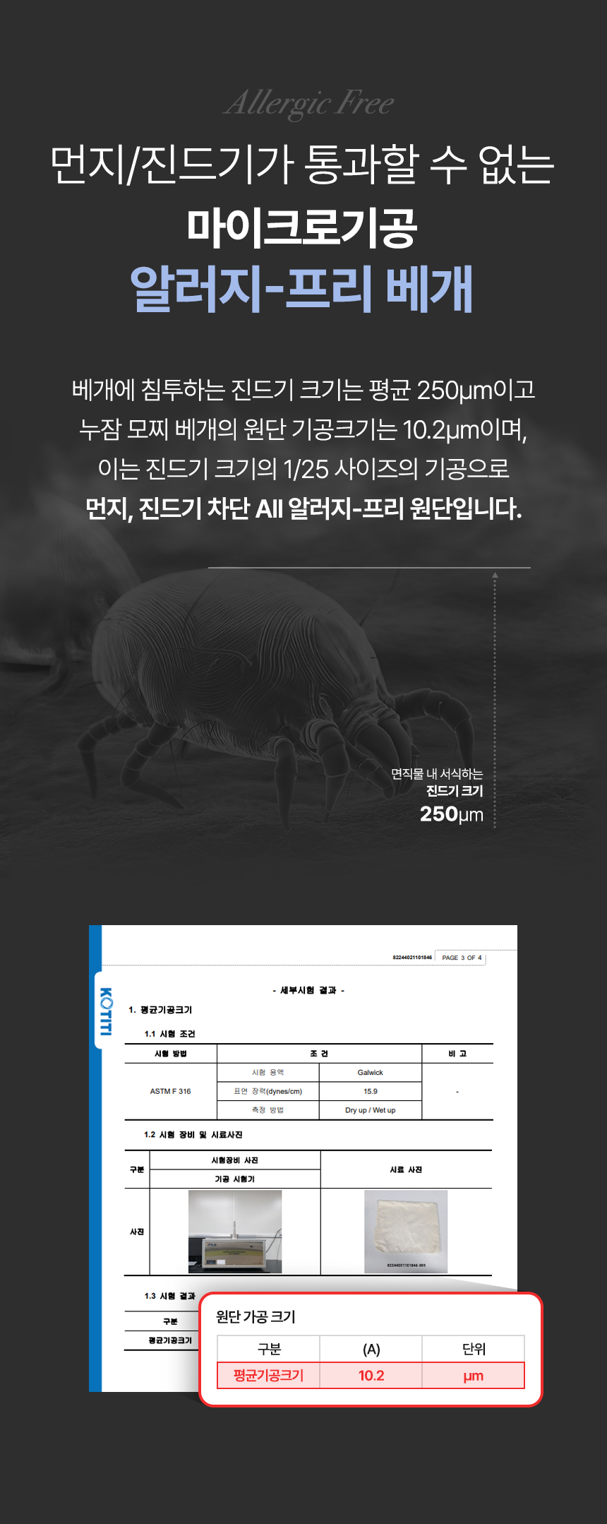 고밀도 알러지-프리 원단