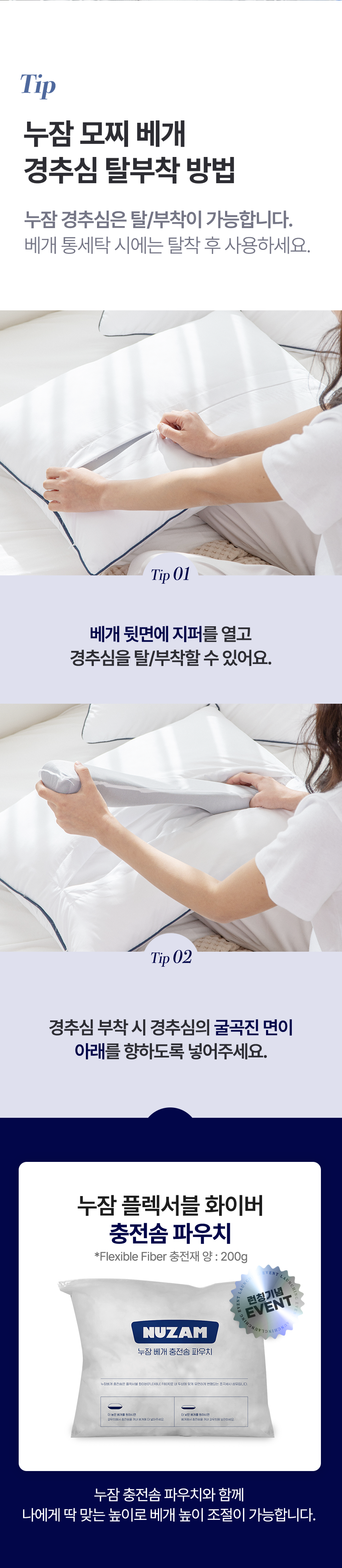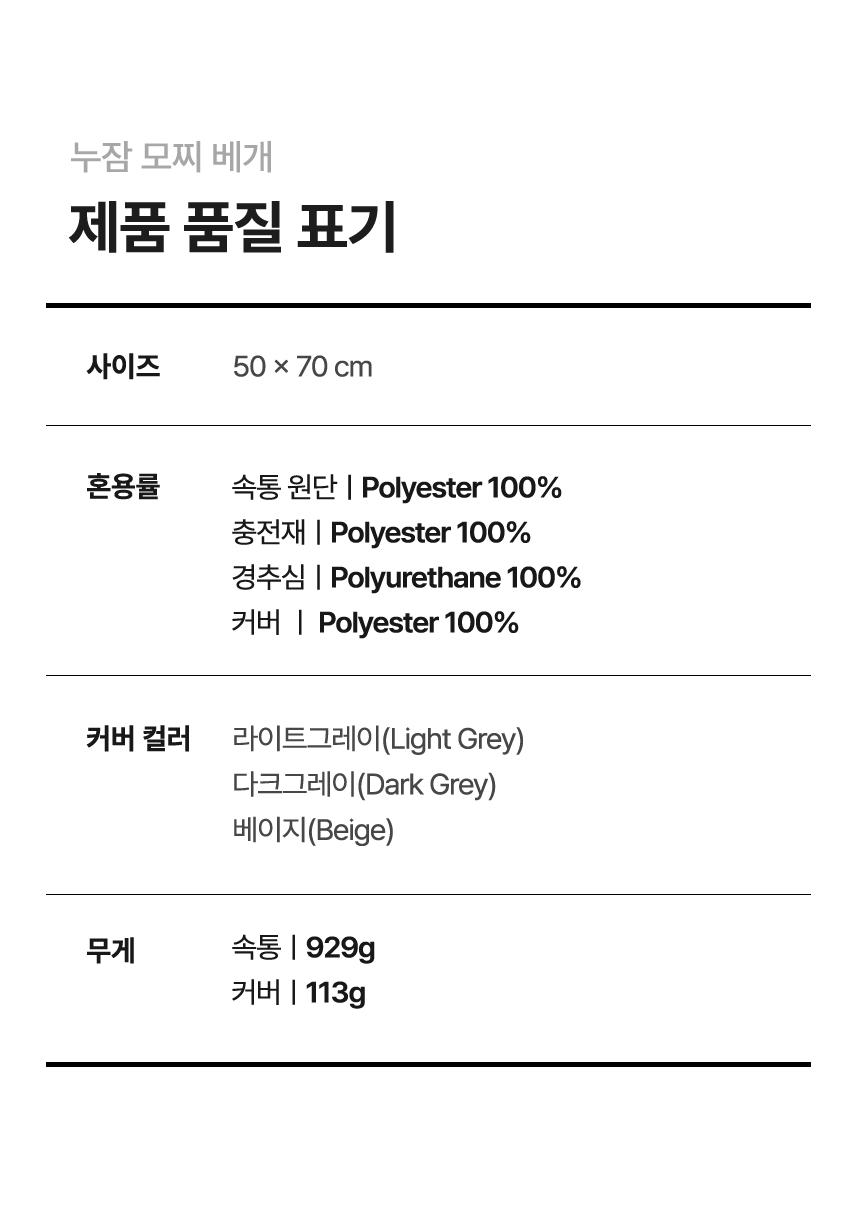 - 솜 양을 조절하여 베개 높이 조절 가능