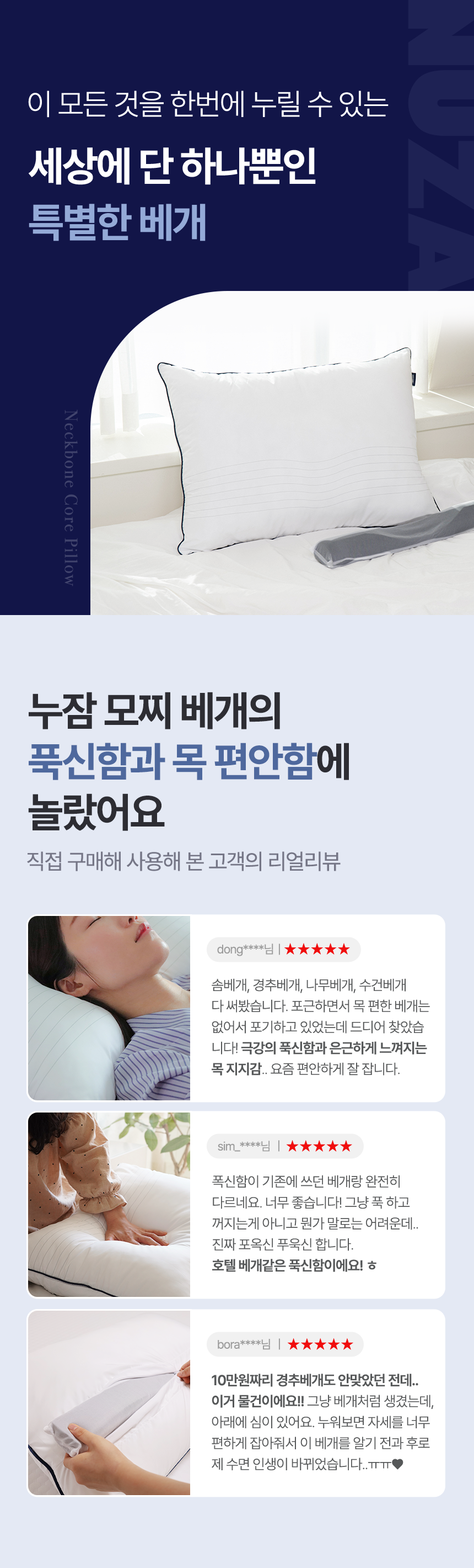 - 호텔 베개보다도 포근하고 쫀득한 촉감의 베개