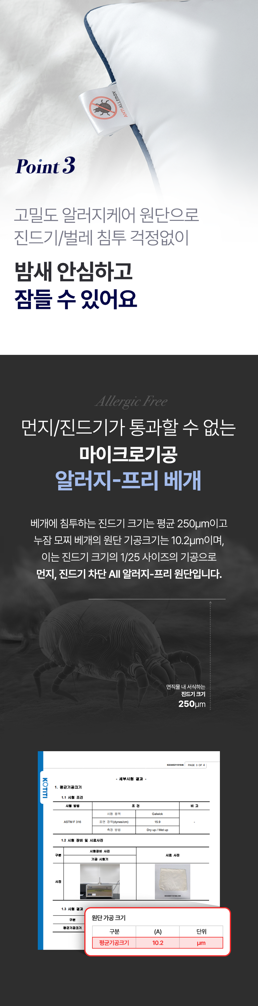 - 진드기/유해물질에 안전한 고밀도 알러지-프리 원단
